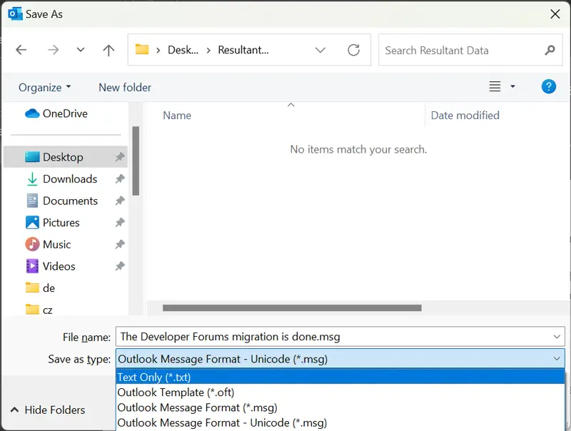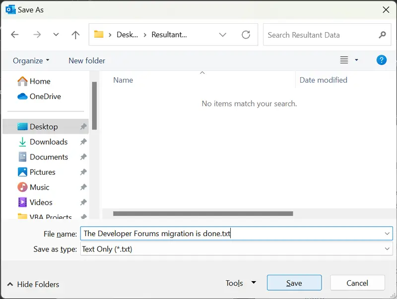 使用 MS Outlook 手動將 PST 轉換為 TXT