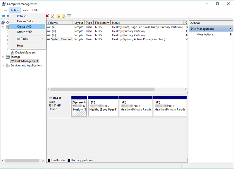 使用以下步驟在 Windows 上創建 VHD 文件: –