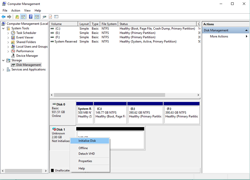 步驟3。右鍵單擊磁盤並打開初始化磁盤選項。