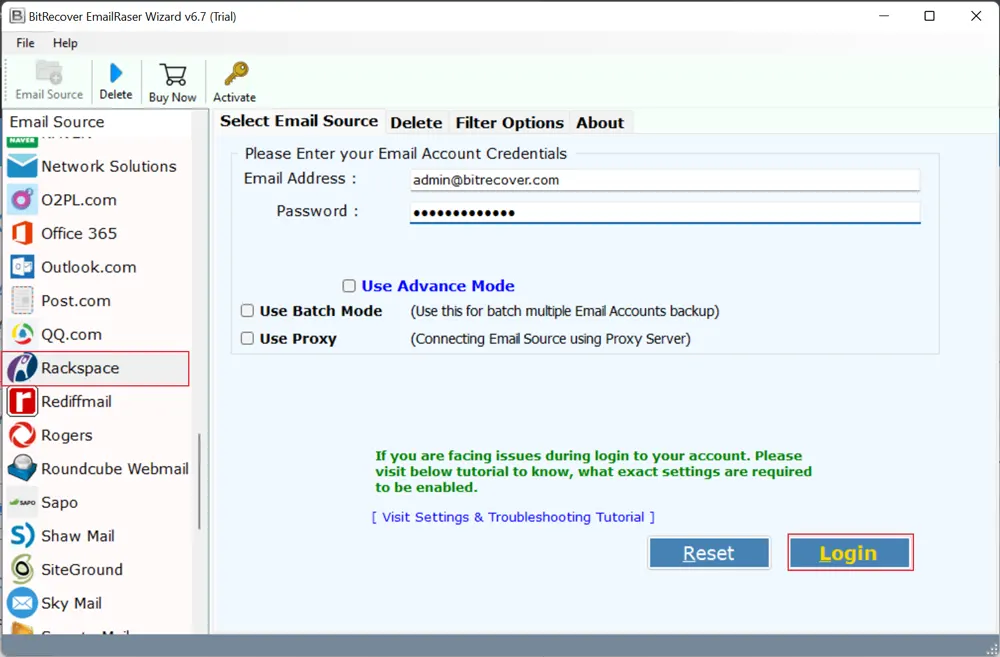 - 首先,安裝並運行Rackspace 電子郵件橡皮擦在您的 Windows 和 Mac 計算機上。