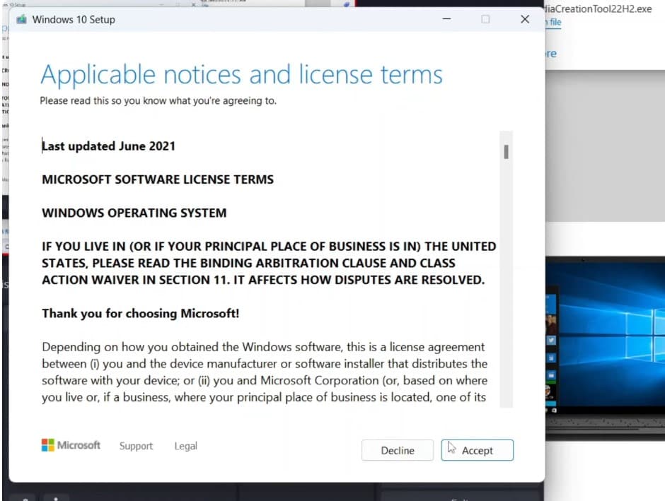 下載完成後,單擊接受以同意使用Windows 10的服務條款。