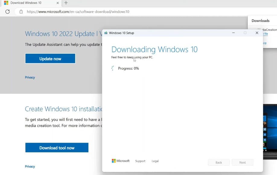 接下來,媒體創建工具將開始從Microsoft服務器下載Windows 10文件。這可能需要一些時間,具體取決於您的互聯網速度。