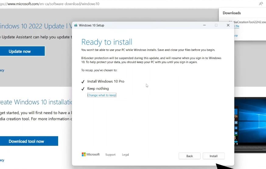 最後,最後一步是單擊“安裝”按鈕。 Windows將重新啟動,您會看到標準Windows 10安裝過程,就像您在沒有操作系統的新電腦上安裝Windows 10一樣。