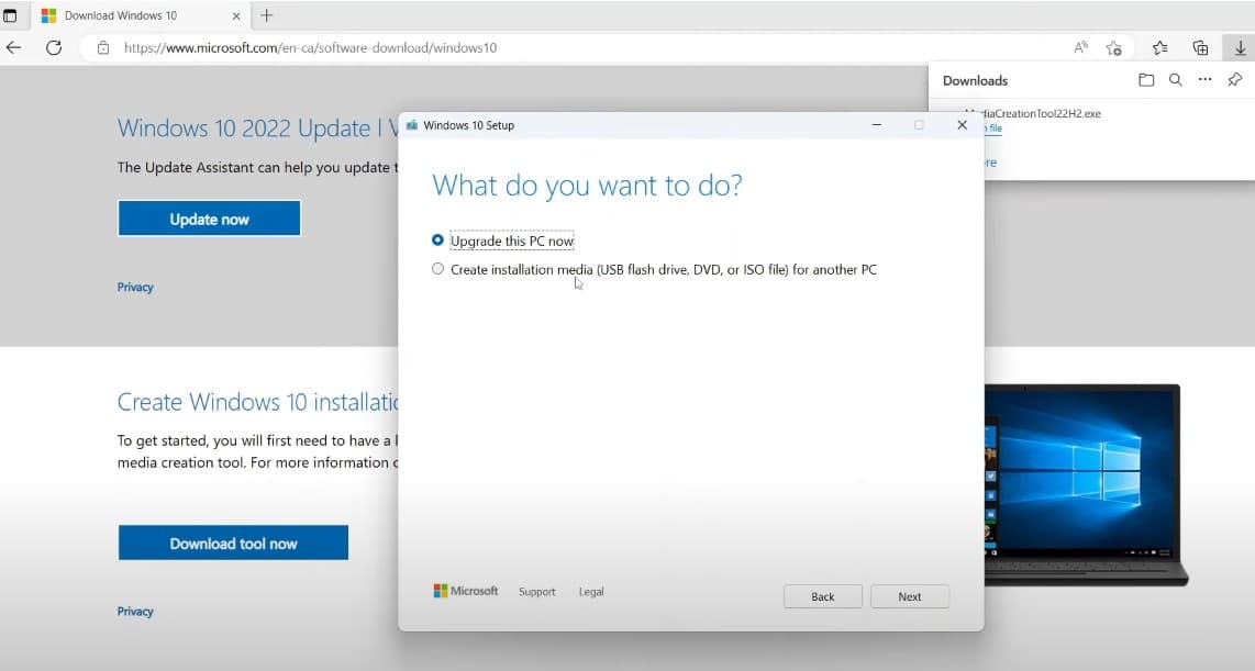 - 單擊升級此PC現在選項,然後點擊下一個按鈕。