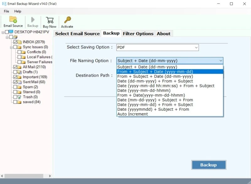 - 之後,單擊備份將 Hotmail 電子郵件下載到您的計算機。