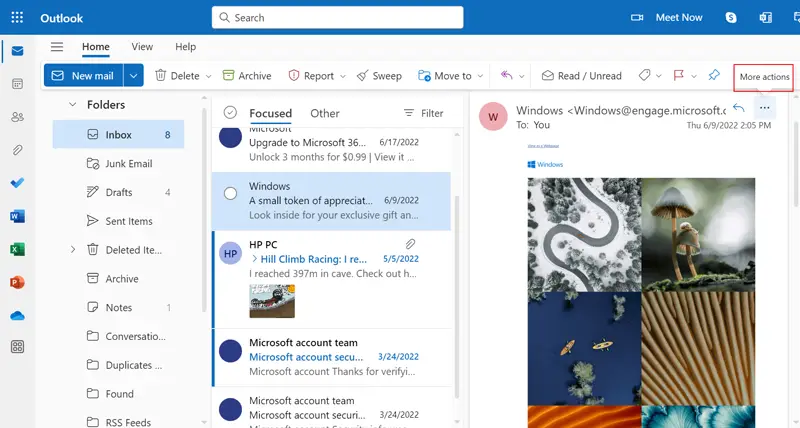 - 打開一個Hotmail 電子郵件您想要下載並選擇的更多行動。