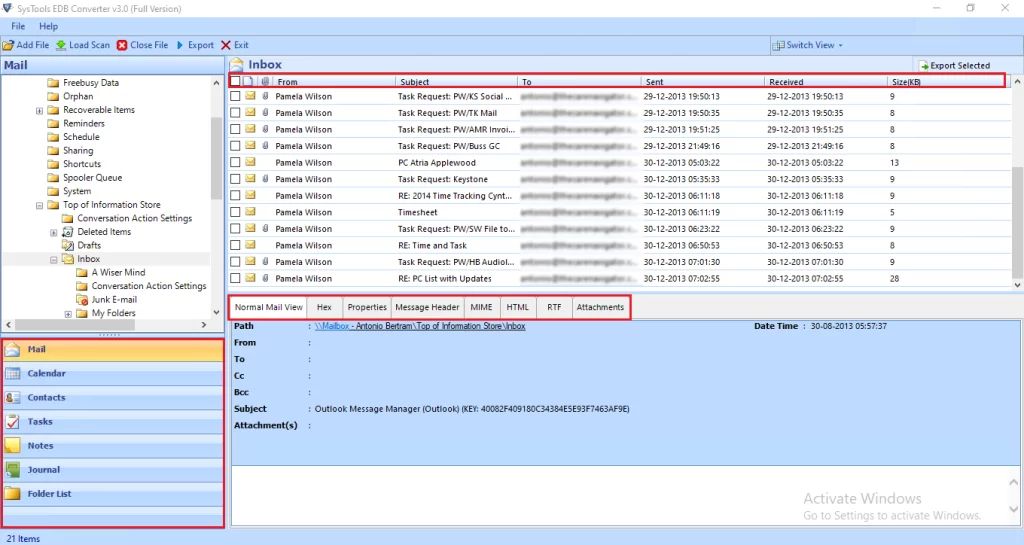 - 獨立軟件界面:該軟件可以完全獨立地轉換 Windows Live Mail EDB 文件。