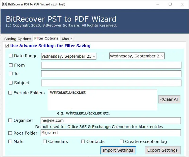 PST 到 PDF 轉換器軟件是將 Outlook 日曆批量導出為 PDF 的絕佳選擇。儘管此實用程序無需 Outlook 即可運行,但它只需要 Outlook 配置文件數據(*.pst 或 *.ost)即可執行導出過程。