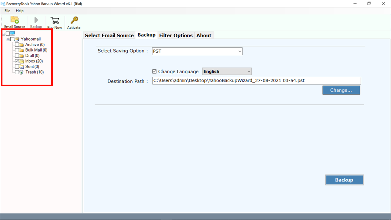 第 3 步 - 將 Yahoo Mail 導出到 PST