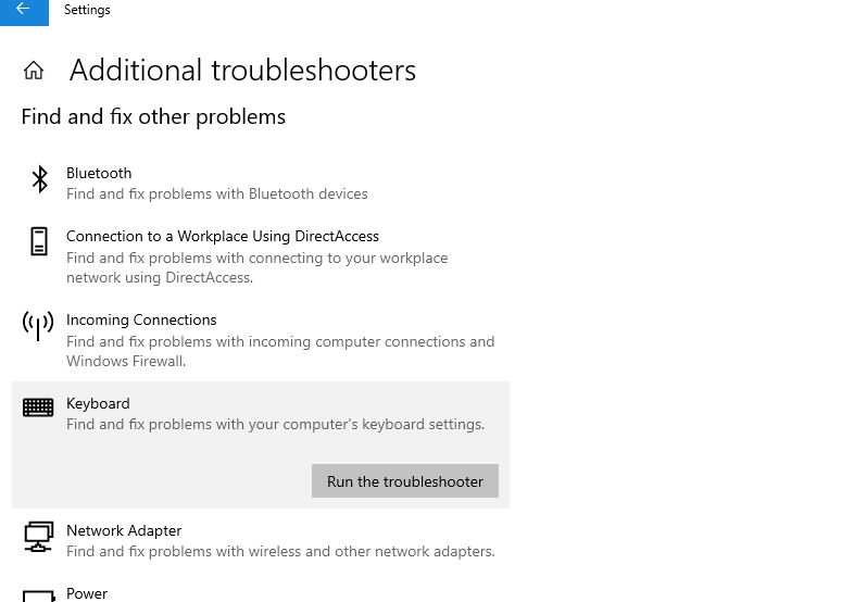 - 選擇鍵盤然後單擊運行疑難解答程序。