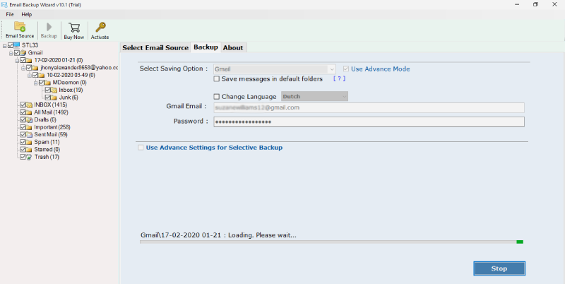 步驟2-該軟件開始在 GUI 中從您的雅虎帳戶獲取所有郵箱。檢查所有雅虎電子郵件文件夾您希望將其數據轉發到您的 Gmail 帳戶。
