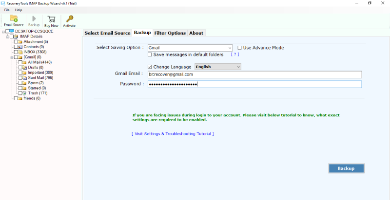第 1 步 - 下載並進入軟件在您的 Windows 機器上。輸入您的雅虎郵件憑據(用戶名和密碼)。