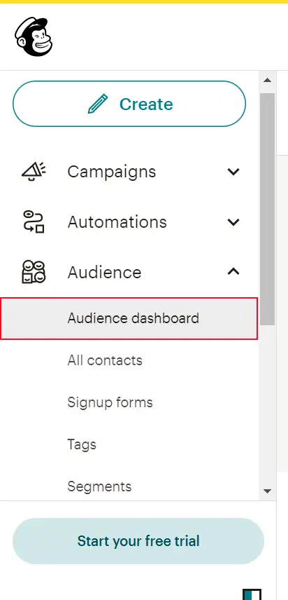 - 登錄您的郵件黑猩猩帳戶並選擇觀眾儀表板從觀眾。