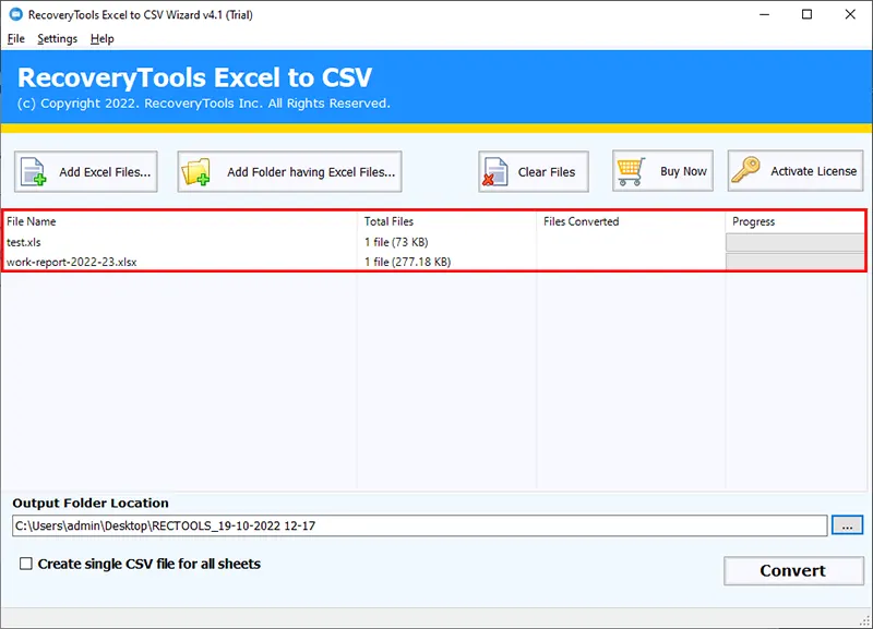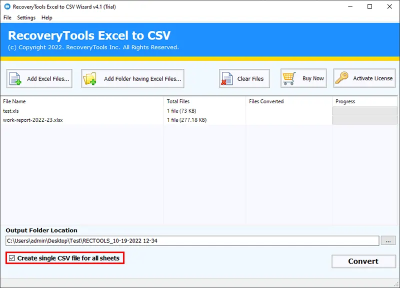 - 如果您創建一個單個 CSV 文件然後單擊從所有工作表創建單個 CSV 文件選項。