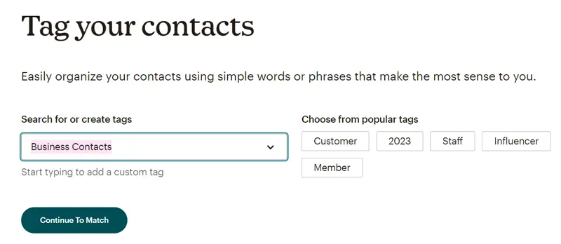 - 創建標籤根據您的選擇並單擊繼續匹配。