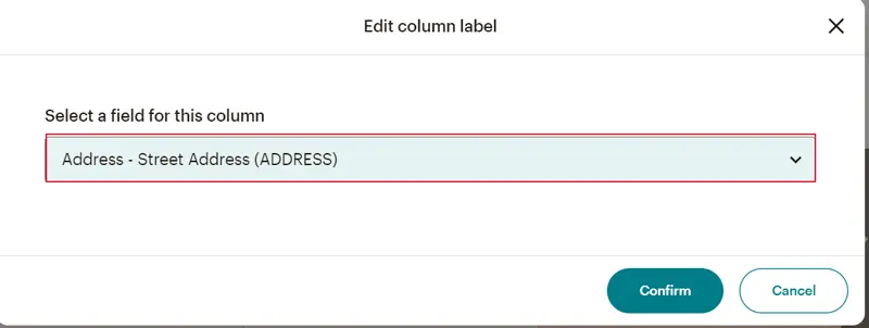 - 選擇一個字段對於此列,如相應的屏幕截圖所示。