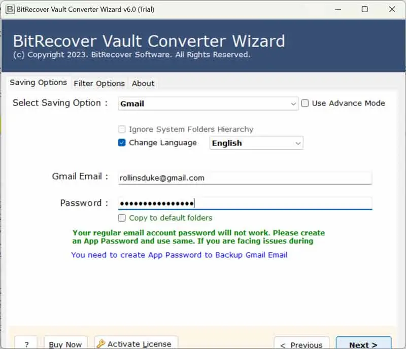 注意:要將 Google 保險櫃電子郵件導入 Gmail,請首先以任何受支持的文件擴展名導出 Google 保險櫃電子郵件。之後,請按照下面給出的直接步驟操作: