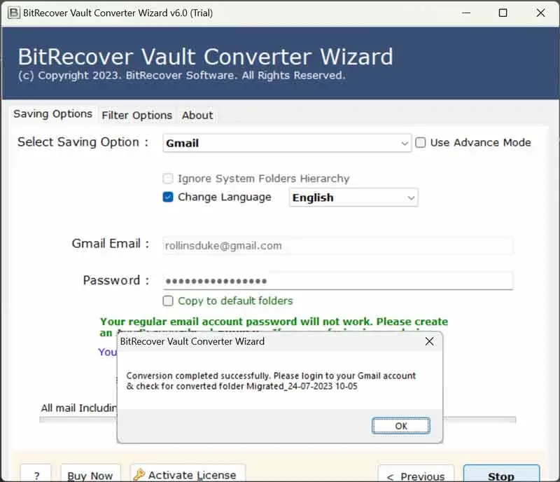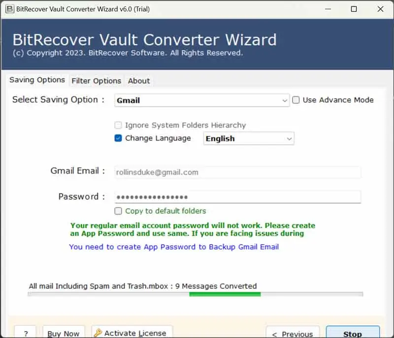 - 使用高級過濾器根據您的選擇將選擇性文件夾從 Google 保險櫃導入到 Gmail 帳戶的選項。