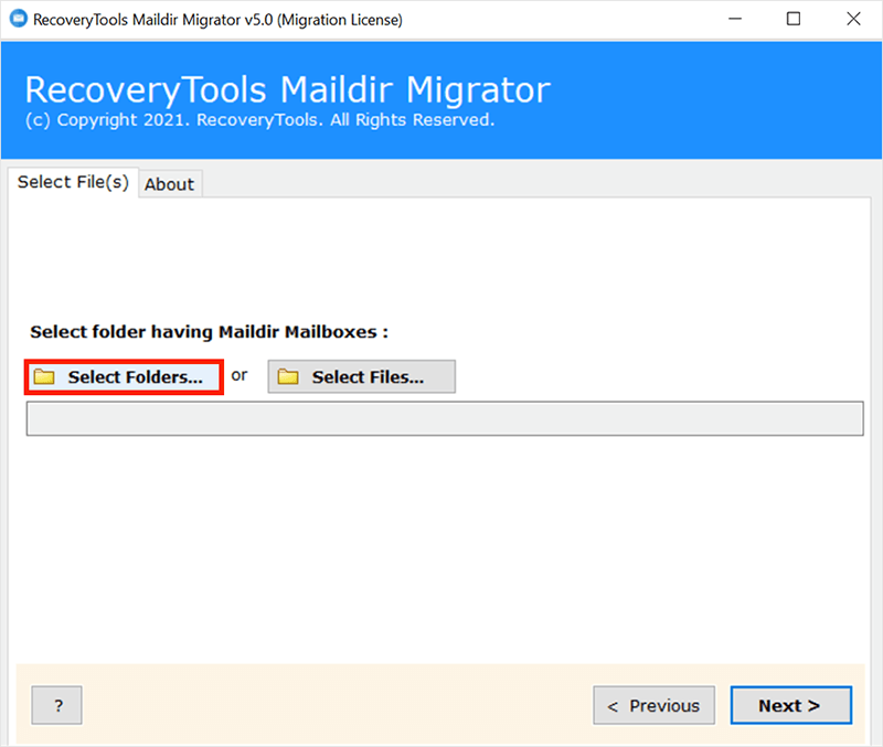 - 現在使用“上傳 Maildir 文件數據”選擇文件“ 和 ”選擇文件夾“ 選項。