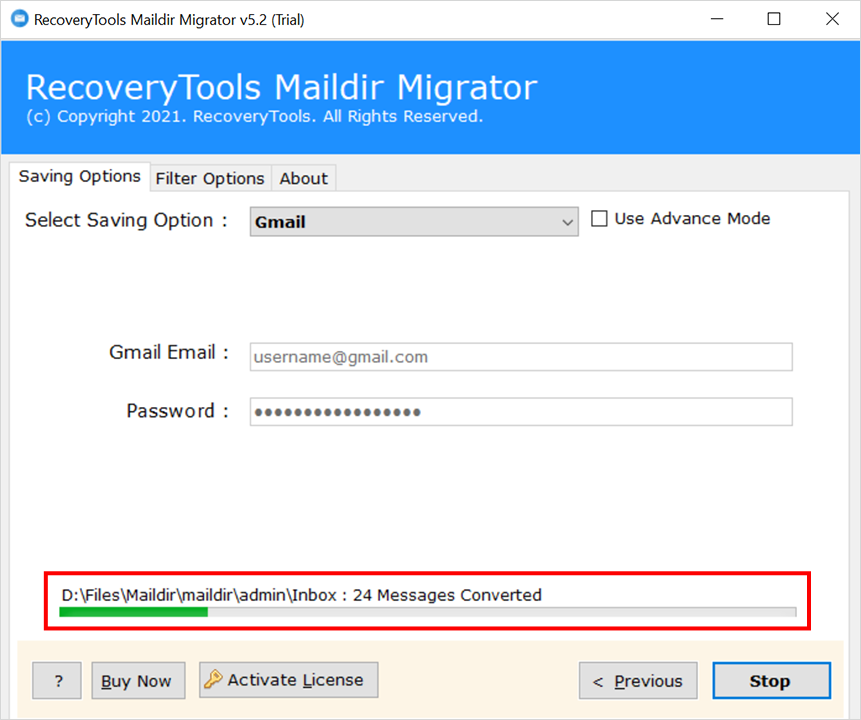 請讀我:Maildir 到 Gmail 轉換器附帶免費演示版本,您可以對其進行測試。因此,用戶可以毫無困難地下載該軟件並觀察其運行情況。但是,試用版只能轉換 25 封電子郵件;如需無限轉換,用戶必須購買許可版本。
