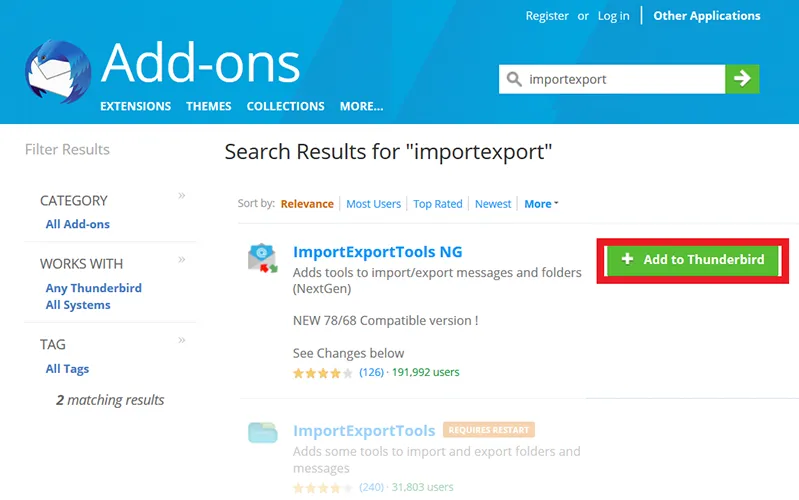 步驟 2:使用 ImportExportTools NG Addons 將 MBOX 文件導入到 Thunderbird
