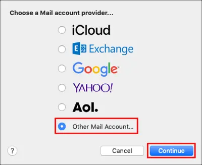 - 現在,選擇一個郵件帳戶提供商作為Google,並點擊“繼續”按鈕。