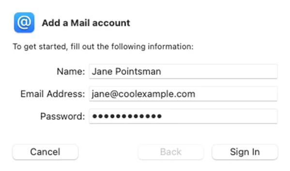 第 1 階段:使用 IMAP 設置將 Gmail 帳戶添加到 Apple Mail。
