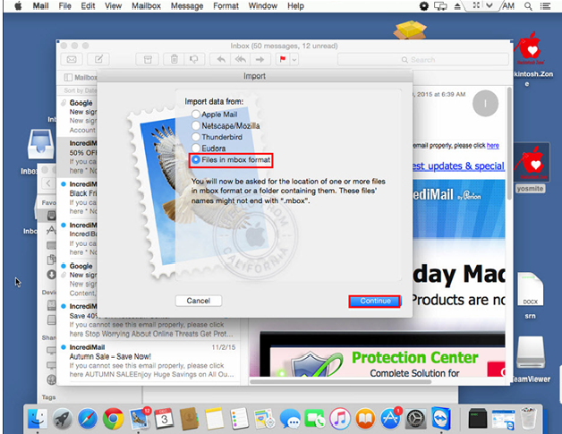 - 然後,選擇“導入數據來自”選項為'MBOX 格式的文件'& 打“繼續”。