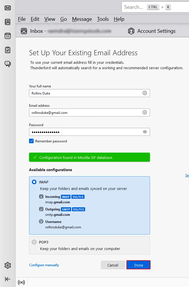 第 1 步:使用 IMAP 設置將您的 Gmail 帳戶添加到 Thunderbird