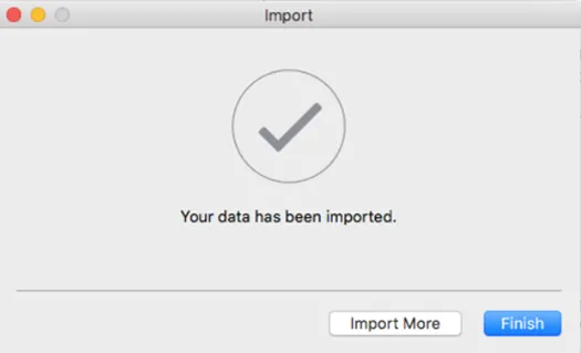 - 最後,導入完成後,您應該在 Outlook for Mac 中看到您的數據。點擊“結束”關閉導入窗口。