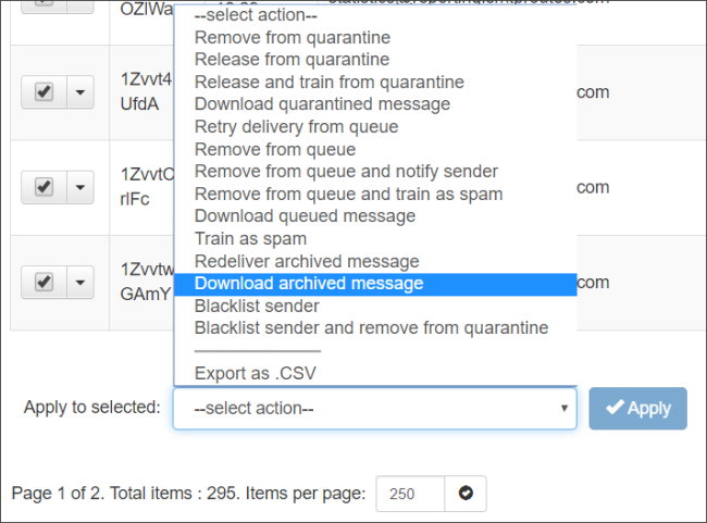 - 選擇已存檔的消息SolarWinds Mail Assure 具有雙重選項。
