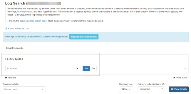 利用日誌搜索在管理員、域或電子郵件級別下載存檔的消息。