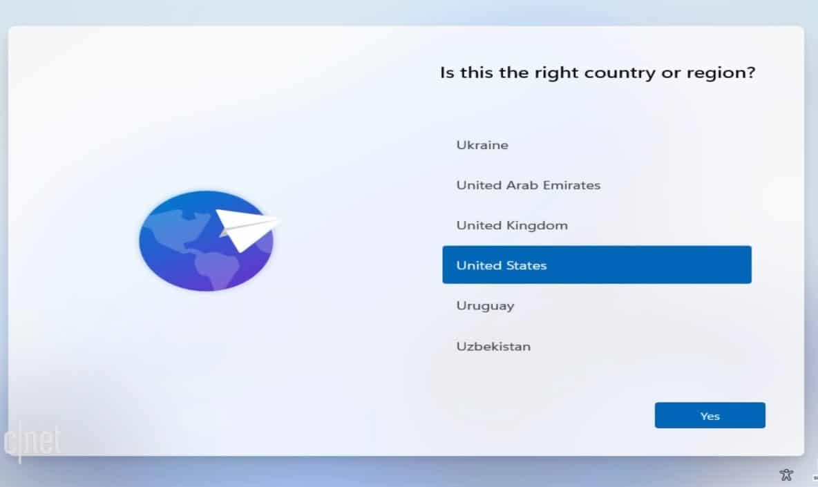 - 選擇您所在的國家或地區,然後單擊“是”,選擇您的鍵盤佈局,然後單擊“下一步”並按照屏幕上的說明進行操作。