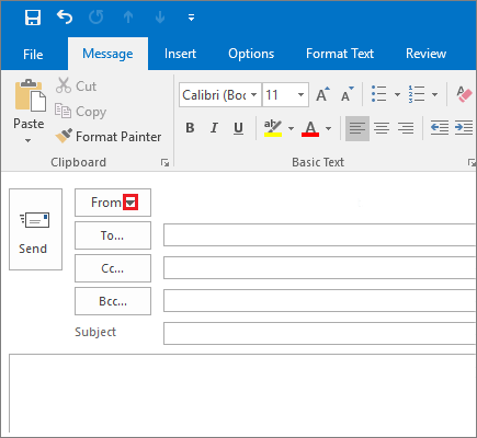 在 Outlook 中添加不同的帳戶後,“新電子郵件”行默認會打開“發件人”行。因此,您可以選擇所需的電子郵件帳戶來發送電子郵件。