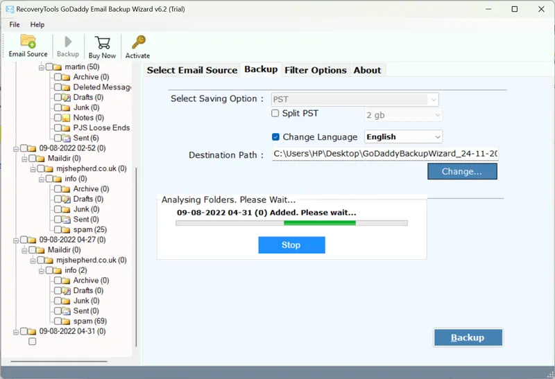- 步驟一:首先將您的 GoDaddy 電子郵件備份到硬盤。