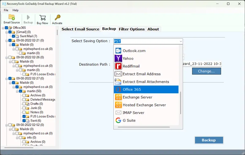 - 支持所有 GoDaddy 服務:該解決方案允許用戶從所有 GoDaddy 電子郵件服務傳輸電子郵件,包括 GoDaddy Email、GoDaddy Office 365 和 GoDaddy Exchange Server。