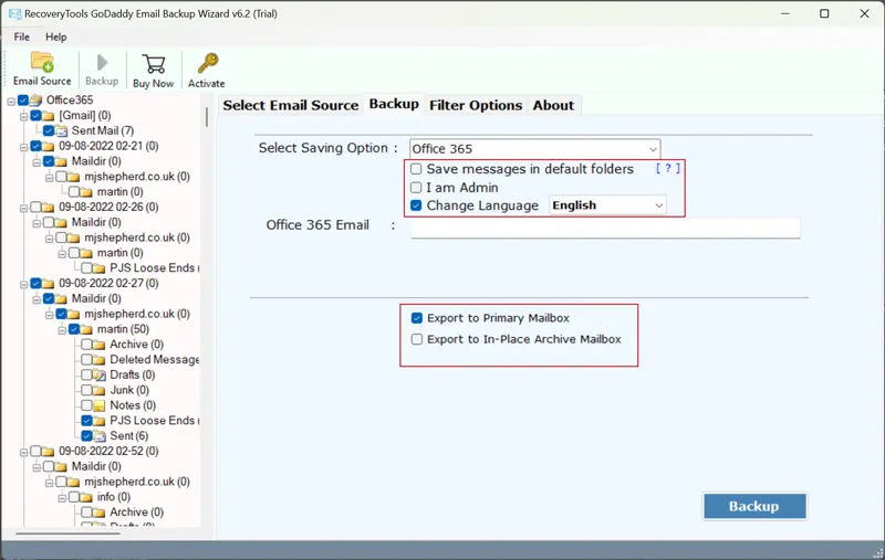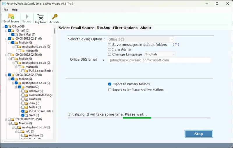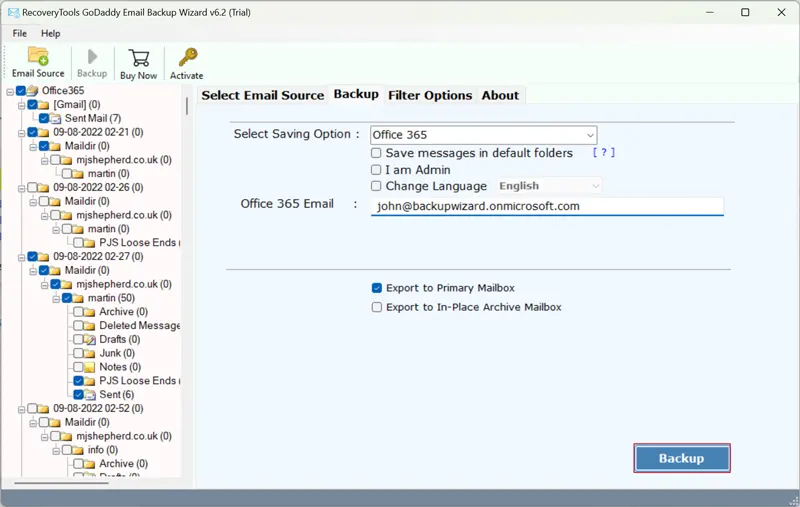 您可以在購買之前手動檢查 GoDaddy 到 Microsoft 365 的遷移工具。演示版完全免費,允許用戶將前 25 個電子郵件項目從源 GoDaddy 帳戶導出到目的地。
