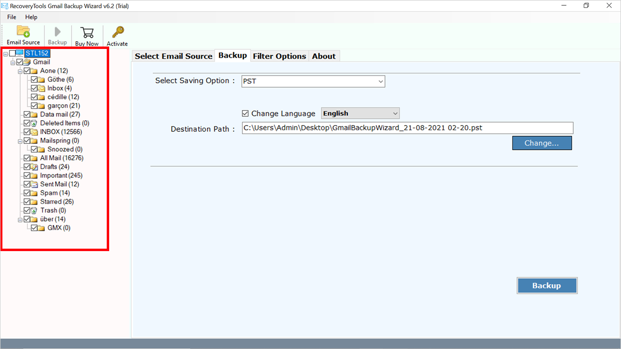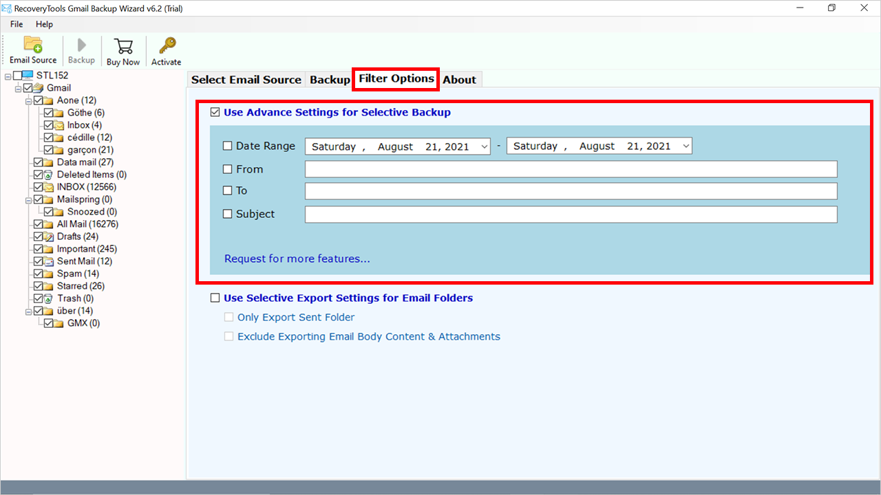- 第三,選擇Gmail 文件夾您想要從 Gmail 轉移到 Zimbra 帳戶的信息。