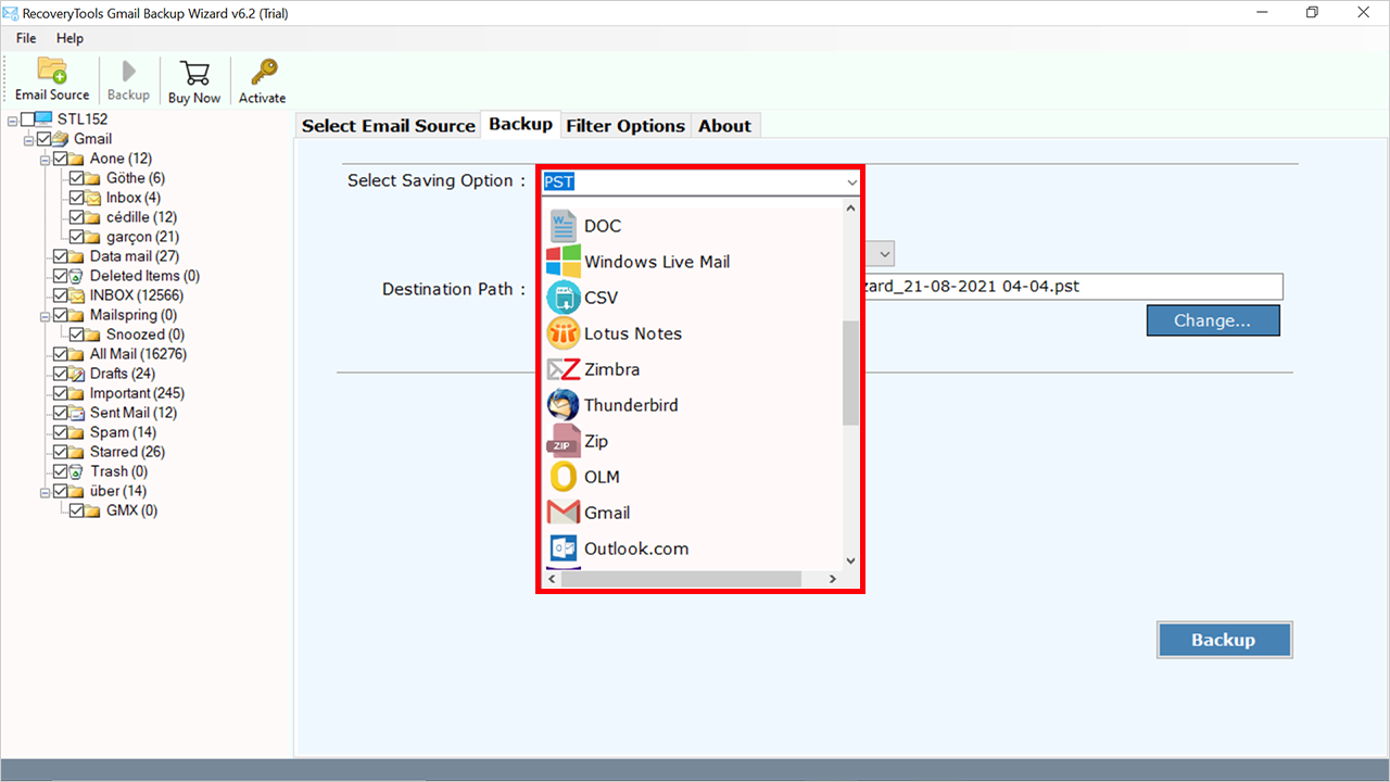 - 批量將 G Suite 導出到 Zimbra – 該軟件提供了一次以 Zimbra 格式保存整個所需文件夾的選項。通過一次下載完整的 Gmail 郵箱,它有助於節省用戶的大量時間。該軟件不需要任何外部應用程序來遷移數據。