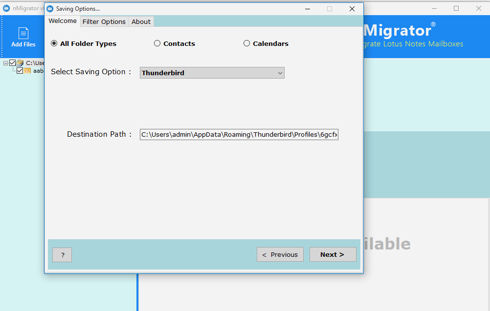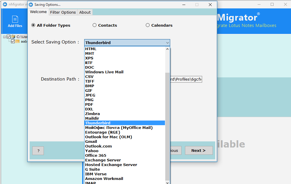 自由選擇目的地位置:該工具提供了根據用戶選擇的選擇性目標路徑將 NSF 保存到 Thunderbird 文件數據的功能。