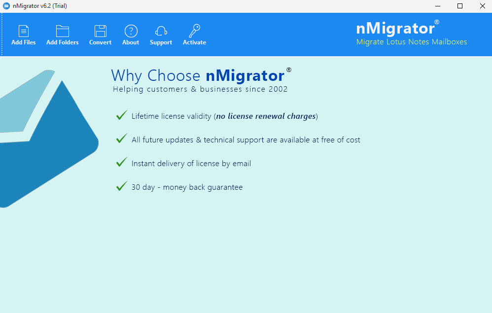 免費演示版評估工具:該軟件附帶免費演示版,可用於測試目的。它允許將每個 NSF 文件夾中的 25 個項目導出到 Thunderbird。