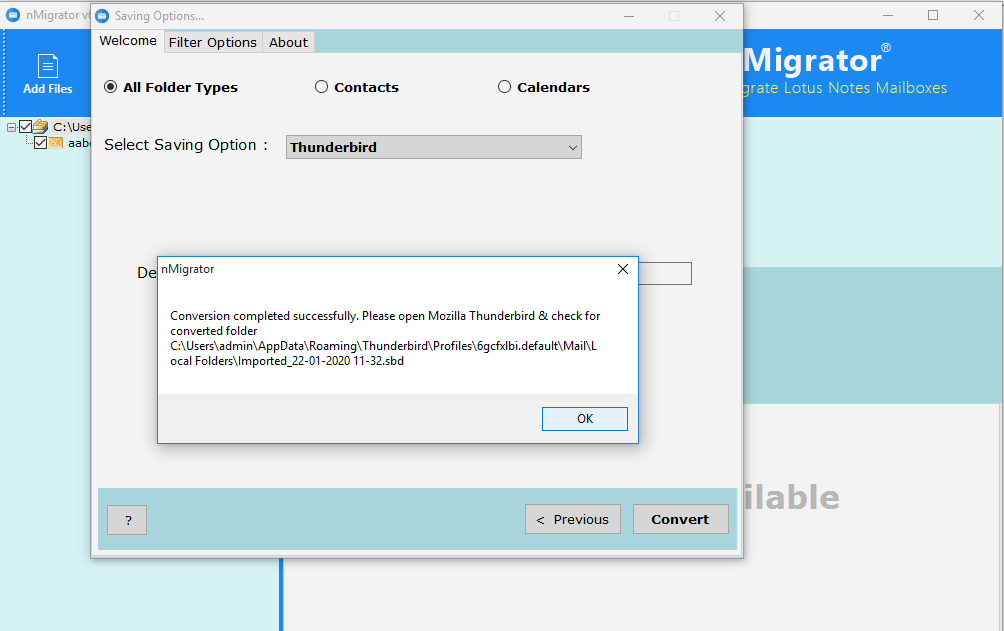 在 Thunderbird 中批量查看 NSF 文件:該軟件的添加文件夾功能對於以批處理模式讀取 Mozilla Thunderbird 中的 NSF 文件非常有用。