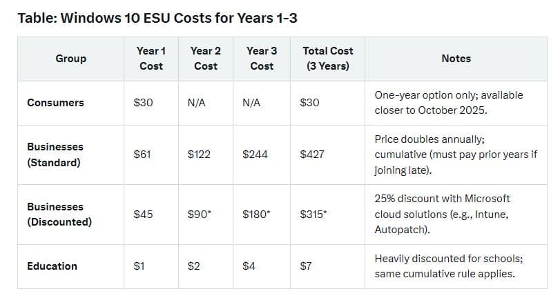 如果您的 PC 運行關鍵任務軟件(例如,舊版會計工具),ESU 可能值得。對於臨時使用,我們建議檢查成本與升級硬件。查看 Microsoft 的 ESU 頁面了解註冊詳細信息(預計 2025 年夏季)。