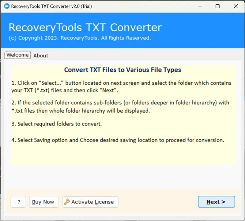 打印 .txt 文件的手動解決方案的缺點限制了其使用。因此,自動化軟件已成為打印 TXT 文檔文件的完美媒介,我們將在這裡討論一款這樣的軟件。 BitRecover TXT 文件轉換器可幫助您將 TXT 文件轉換為各種格式,並具有完整的數據安全性。該軟件可以離線工作,幫助您打印記事本 TXT 文件。您可以依靠此實用程序一次打印多個文本文件,而不會丟失數據。此外,您甚至可以嘗試演示版本,通過將五個 TXT 文件轉換為十七種格式來測試軟件的功能。