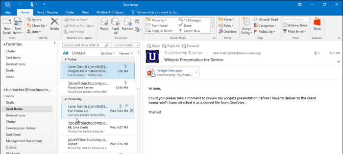 - 打開 MS Outlook 並單擊已發送物品Windows 左側面板中的文件夾。雙擊要打開的所需電子郵件,搜索要調用的電子郵件。