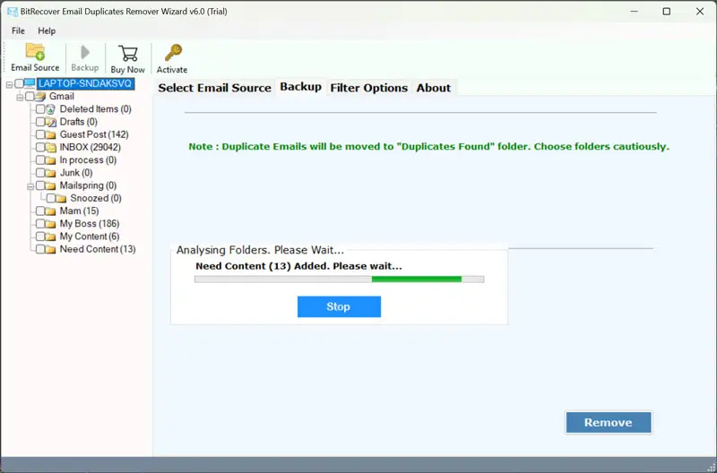 - 等待數據出來加載到軟件面板通過 Zimbra 重複刪除器。