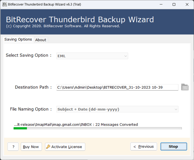 - 最後,按下一個按鈕到保存所有 Thunderbird 電子郵件。