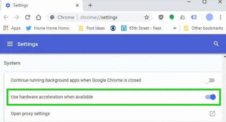 - 找到標有“在以下情況下使用硬件加速”的切換開關:
