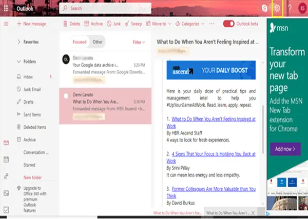 - 首先使用帳戶憑據按照菜單選項登錄 Outlook.com,然後進行設置。