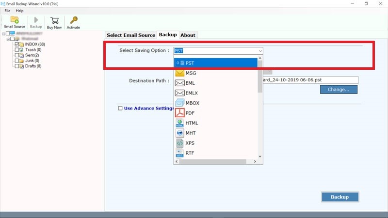 最後,點擊備份選項卡開始將康卡斯特電子郵件從一個帳戶傳輸到另一個帳戶。